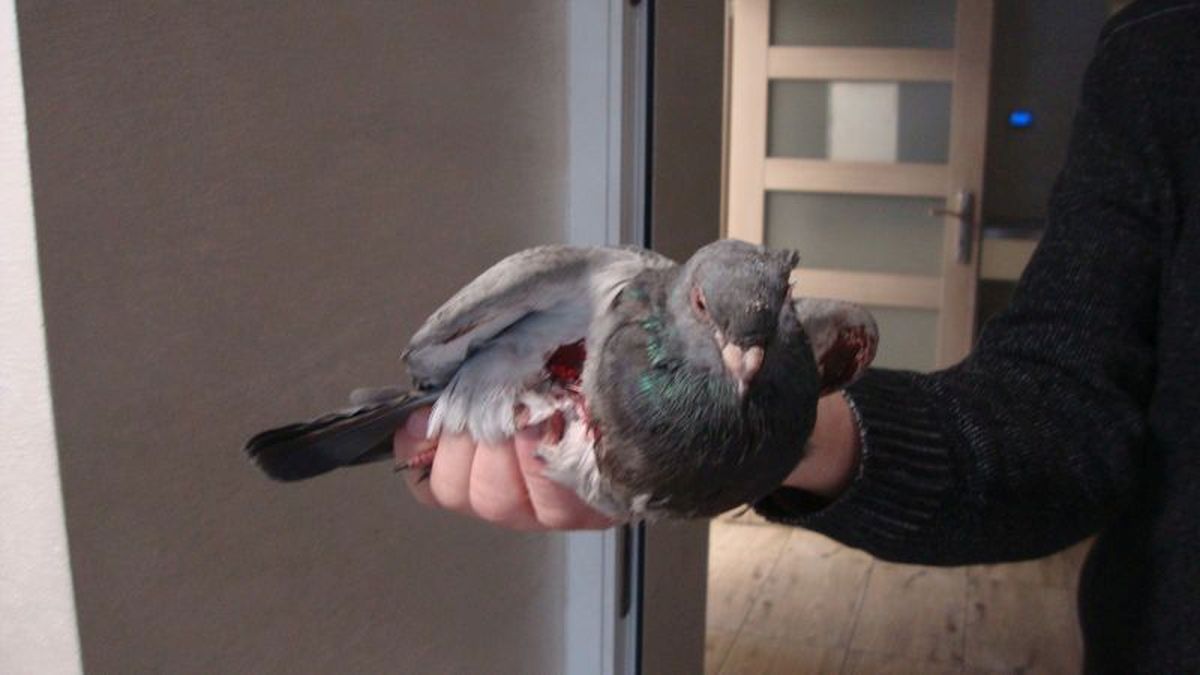 gołąb odłowiony w dniu 23.01.2022r. z ul. Sienkiewicza w Nowym Sączu.
