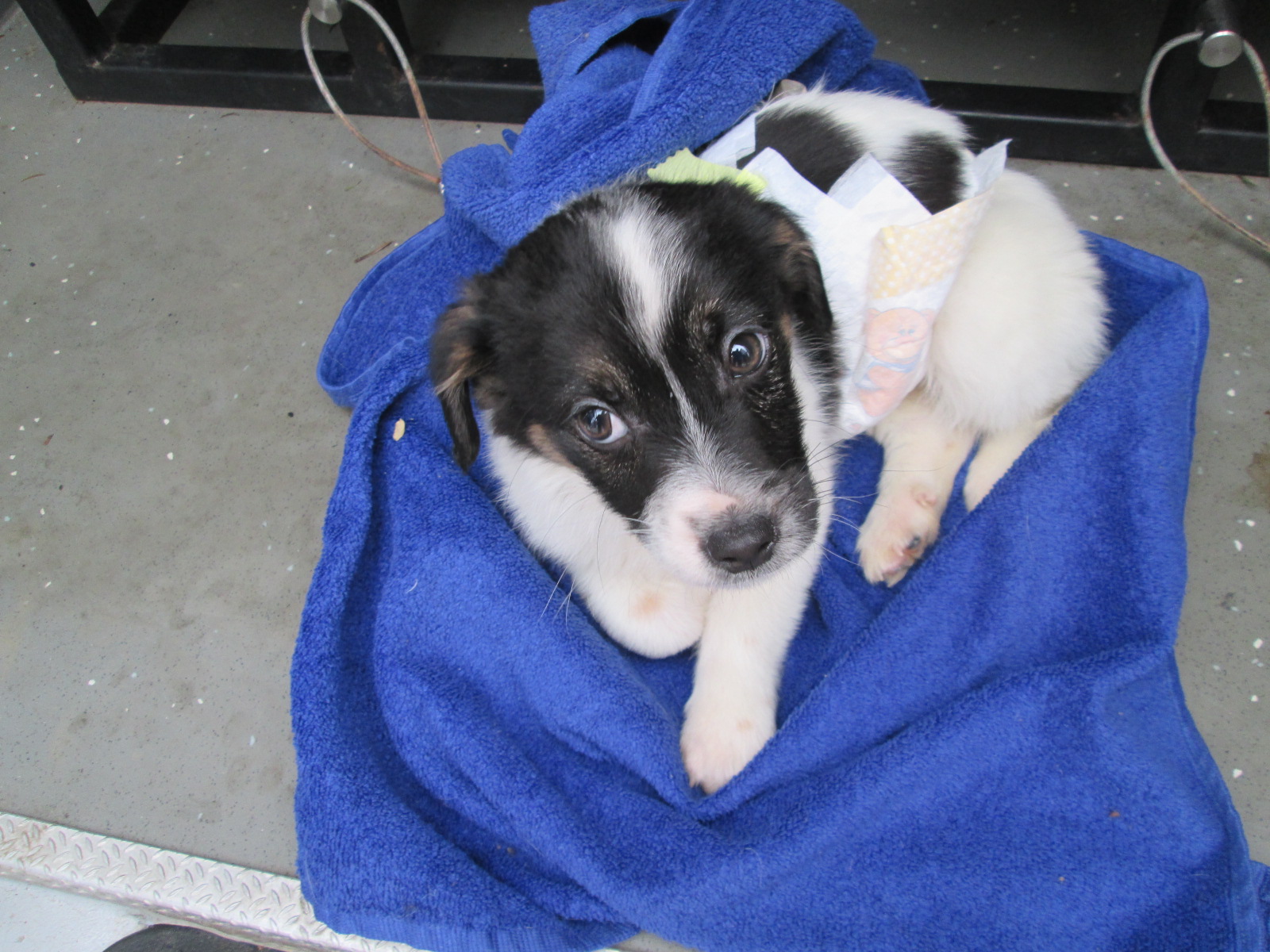 2 psy (szczeniaki) odłowione w dniu 10.01.2022r. z ul. Jana Pawła II w Nowym Sączu.