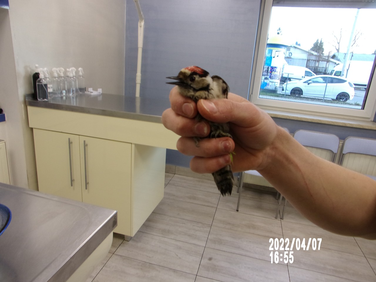 dzięcioł odłowiony w dniu 07.04.2022 r. z ul. Radzieckiej w Nowym Sączu.