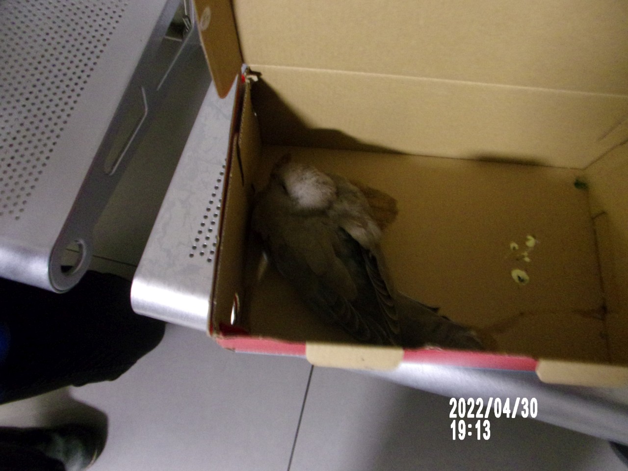 ptak odłowiony w dniu 25.04.2022 r. z al. Piłsudskiego w Nowym Sączu.