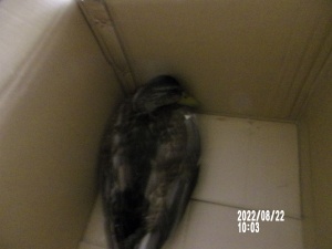 ptak odłowiony w dniu 27.08.2022r z ul. Lwowskiej w Nowym Sączu.
