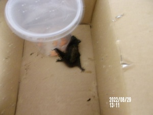 nietoperz odłowiony w dniu 16.08.2022r z ul. Królowej Jadwigi.