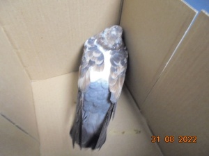 ptak odłowiony w dniu 29.08.2022r z ul. Broniewskiego w Nowym Sączu.