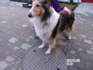 pies odłowiony w dniu 04.01.2023r. z ul. Krakowskiej w Nowym Sączu.