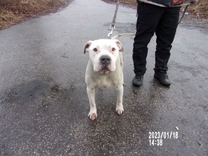 pies odłowiony w dniu 18.01.2023r. z ul. Bulwar Narwiku w Nowym Sączu.