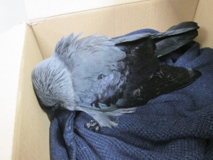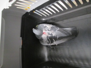 gołąb odłowiony w dniu 13.01.2023r. z ul. Kolejowej w Nowym Sączu.