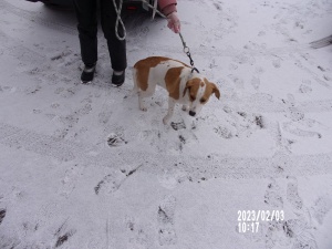 pies odłowiony w dniu 11.02.2023r. z ul. Librantowskiej w Nowym Sączu.