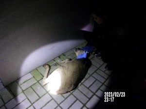 sarna odłowiona w dniu 23.02.2023r. z ul. Falkowej w Nowym Sączu.