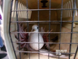 gołąb odłowiony w dniu 23.02.2023r. z ul. Ducha Św. w Nowym Sączu.