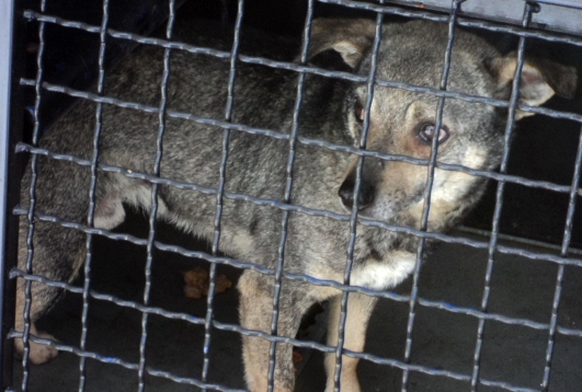 Straż Miejska po odłowieniu czworonoga, zawiozła go do lecznicy weterynaryjnej.