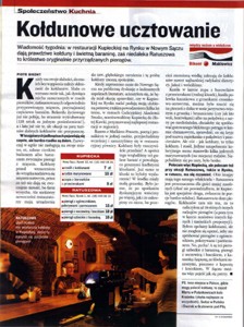 Kiedy zaproszono mnie do Nowego Sącza na publiczną dyskusję o kulinarnych aspektach literatury, ucieszyłem się, że będę miał okazję sprawdzić, czy w Kupieckiej na Rynku nadal podają moją ulubioną potrawę z takim powodzeniem (kilka lat temu, w ramach Galicyjskiej Akademii Smaku, nominowaliśmy Kupiecką do Złotej Kawki, przyznawanej najlepszej restauracji w regionie).