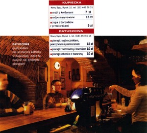 Polecam więc Kupiecką, ale polecam też przy okazji Ratuszową, także w Rynku, w ratuszu, ma się rozumieć. Obie knajpy mają tego samego właściciela - Ratuszowa jest przeznaczona dla gości mniej zasobnych (choć nie powiedziałbym, że Kupiecka jest specjalnie droga, zwłaszcza że porcje bardzo solidne). Ratuszowa to dom pierogów. Kołdunów tam nie ma, za to naliczyłem aż 19 różnych innych rodzajów pierogów (a poza tym w karcie mnóstwo innych fajnych i taniutkich propozycji). Byłem opchany kołdunami, ale nie mogłem się oprzeć, żeby nie spróbować pierogów z ogóreczkiem, pokrzywami i parmezanem. No, pycha! A są też pierogi uzbeckie z baraniną, pierogi z soczewicą i boczkiem, z kaszanką i kapustą, ze śliwkami suszonymi, pieczone z kapustą i kminkiem. W Sączu można więc pojeść jak się patrzy.