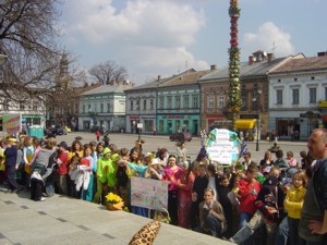 Happening przebiegał pod hasłem "W pokłonie matce-ziemi". Korowód poprzebieranych dzieci z transparentami, śpiewem i niezliczonymi rekwizytami, przeszedł ulicą Jagiellońską, wzbudzając powszechne zainteresowanie przechodniów. Prowadził go smok, orszak z królową i rycerze. Przygotowania do takiego wyjścia rozpoczęły się już miesiąc temu ale do czasu rozpoczęcia imprezy,