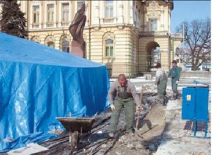 - Budowę fontanny zakończymy przed pierwszą rocznicą śmierci Ojca Świętego, zdążymy - zapewniają majstrzy z firmy Koral, uwijający się na płycie Rynku w Nowym Sączu. Po dniach mrozów i śnieżyc, roboty nabrały przyspieszenia.