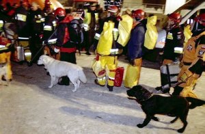 Początkowo nowosądeccy ratownicy prowadzili poszukiwania bez udziału psów - na rumowisku przebywało zbyt wielu ludzi. Wyszkolone zwierzęta wprowadzili do akcji dopiero około pierwszej w nocy, gdy zarządzono ciszę. Od paru godzin nie dochodziły już spod ruin żadne odgłosy. Psy nie wyczuły nikogo żywego. Nad ranem powtórzono akcję, po raz pierwszy użyto też geofonów. I one nie wykazały oznak życia pod zawałem.