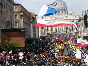 Po 16-godzinnej szaleńczej jeździe szczęśliwie odnaleźliśmy hotelik w Genazzano pod Rzymem i w środę o świcie ustawiliśmy się w gigantycznej kolejce do Bazyliki św. Piotra. Otaczali nas sami Włosi. Polacy jeszcze nie dotarli. Po czterech godzinach byliśmy już na schodach ze łzami w oczach. Jeszcze dwa kwadranse i stanęliśmy przed katafalkiem z ciałem Ojca Świętego. Porządkowi popędzali, ale my wróciliśmy do tego miejsca, gdzie leżał największy z Polaków jeszcze raz. Później trzeba było wracać do Domu Generalnego Zgromadzenia Księży Salwatorianów, gdzie ks. Krzystek ma przyjaciół.