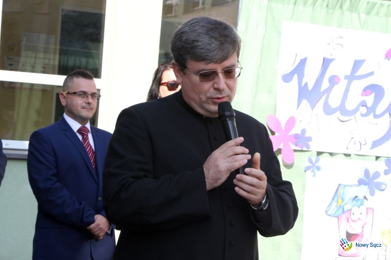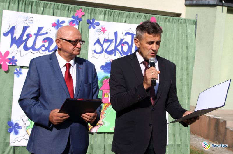 - Szanowni Nauczyciele, Kochane Dzieci i Drodzy Rodzice! To ważny dzień dla szkoły, kiedy zostaje wręczona Tarcza Herbowa „Zasłużony dla Miasta Nowego Sącza”, bo to znaczy, że wszyscy, cały Nowy Sącz, doceniają znaczenie tej placówki oświatowej. O jej zasługach dla Nowego Sącza mówił przed chwilą pan przewodniczący, a ja miałem zaszczyt rekomendować tę szkołę i mówić, co ona dla Nowego Sącza znaczy, a znaczy bardzo wiele. Z tej szkoły wychodzą dzieci wykształcone, które będą budować Nowy Sącz i Polskę. Serdecznie za to dziękuję i gratuluję tego wyróżnienia - powiedział Jerzy Gwiżdż, a następnie zwrócił się do dzieci, zwłaszcza do tych, które po raz pierwszy przekroczyły dziś próg szkoły.