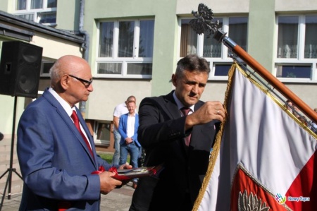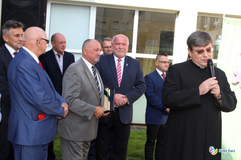 Podczas uroczystego rozpoczęcia roku, Przewodniczący Rady Miasta Nowego Sącza Janusz Kwiatkowski wraz z radnym i przewodniczącym Zarządu Osiedla Barskie, Mieczysławem Gwiżdżem, wręczyli szkole Tarczę Herbową „Zasłużony dla Miasta Nowego Sącza”.