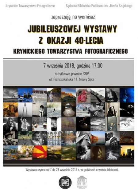 W Sądeckiej Bibliotece Publicznej swój jubileusz 40-lecia istnienia będzie świętować Krynickie Towarzystwo Fotograficzne. Wernisaż wystawy prac członków towarzystwa odbędzie się 7 września o godzinie 17:00.