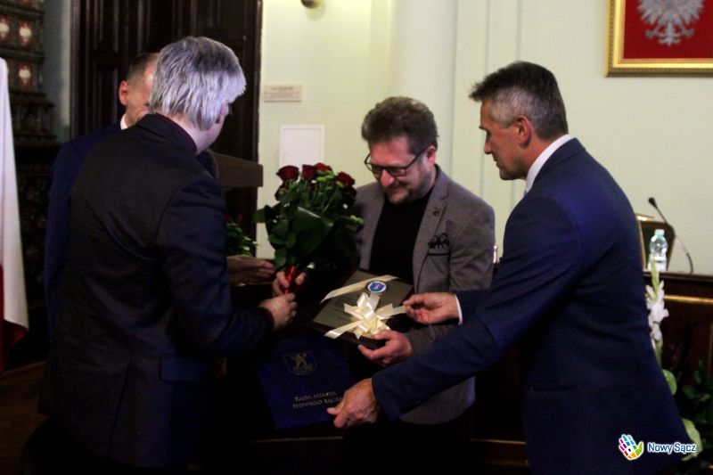Podczas dzisiejszej sesji Rady Miasta Nowego Sącza, dwóm sądeckim malarzom - Ryszardowi Miłkowi i Wacławowi Jagielskiemu - a także naczelnikowi i I kapelmistrzowi Orkiestry Reprezentacyjnej Straży Granicznej ppłk SG dr. hab. Stanisławowi Strączkowi, wręczono Tarcze Herbowe "Zasłużony dla Miasta Nowego Sącza".
