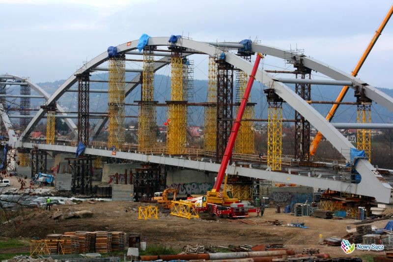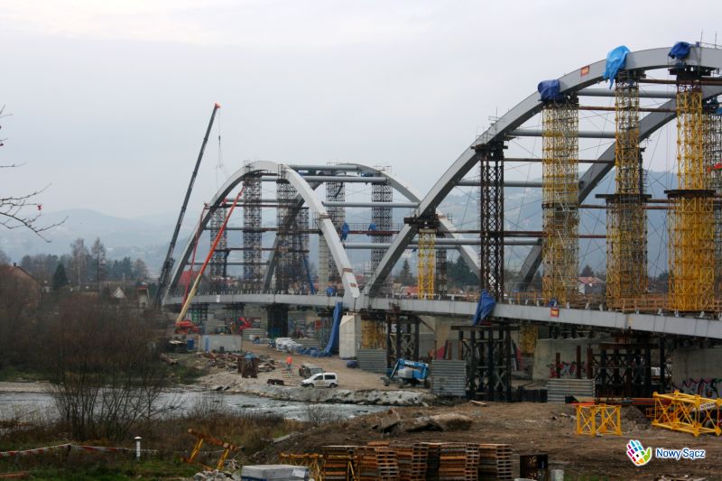 Obecnie zamontowany został łuk od strony osiedla Helena, demontowane są podpory tymczasowe, które służyły do montażu łuków. Na ukończeniu jest również łuk od strony Nowego Sącza.