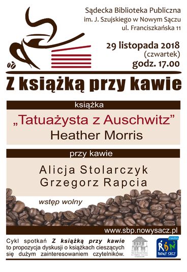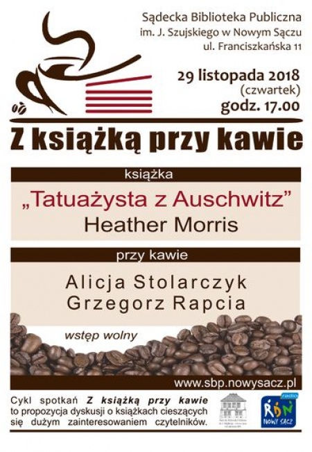 "Z książką przy kawie" – to cykl spotkań organizowanych przez Sądecką Bibliotekę Publiczną, podczas których odbywają się dyskusje na temat książek cieszących się dużym zainteresowaniem czytelników. W najbliższy czwartek 29 listopada o godzinie 17:00 Alicja Stolarczyk i Grzegorz Rapcia poprowadzą spotkanie dotyczące książki "Tatuażysta z Auschwitz".