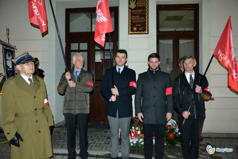 - Chcieliśmy oddać hołd poległym partyzantom oddziału „Grot” Mariana Mordarskiego „Ojca”. W nocy z 7. na 8. grudnia 1946 roku na dworcu kolejowym w Nowym Sączu doszło do starcia z Ludowym Wojskiem Polskim, w wyniku czego śmierć poniósł partyzant oddziału Julian Leśniak pseudonim „Bystry” - mówi prezes stowarzyszenia Kamil Olesiński. – Niestety wielu sądeckich partyzantów konspiracji antykomunistycznej pochowanych jest w mogiłach bezimiennych, podobnie jak wymieniony Julian Leśniak. Zarówno tą tablicą, jak i upowszechnianą przez nas wiedzą, chcemy zwrócić uwagę na nie załatwione po dziś dzień sprawy uczczenia ich walki w formie monumentów i przede wszystkim godnych wojskowych grobów.