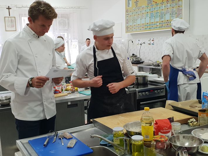- Kłaniam się w pas wszystkim, którzy zdecydowali się wziąć udział w tym konkursie i gratuluję odwagi – mówił Karol Okrasa do czternastu uczniów sądeckiego „gastronoma”. - Pierwsze miejsce zdobyła osoba, która popełniła najmniej błędów, bo każdy konkurs to jest konkurs błędów – kto ich popełni najmniej, ten wygrywa.