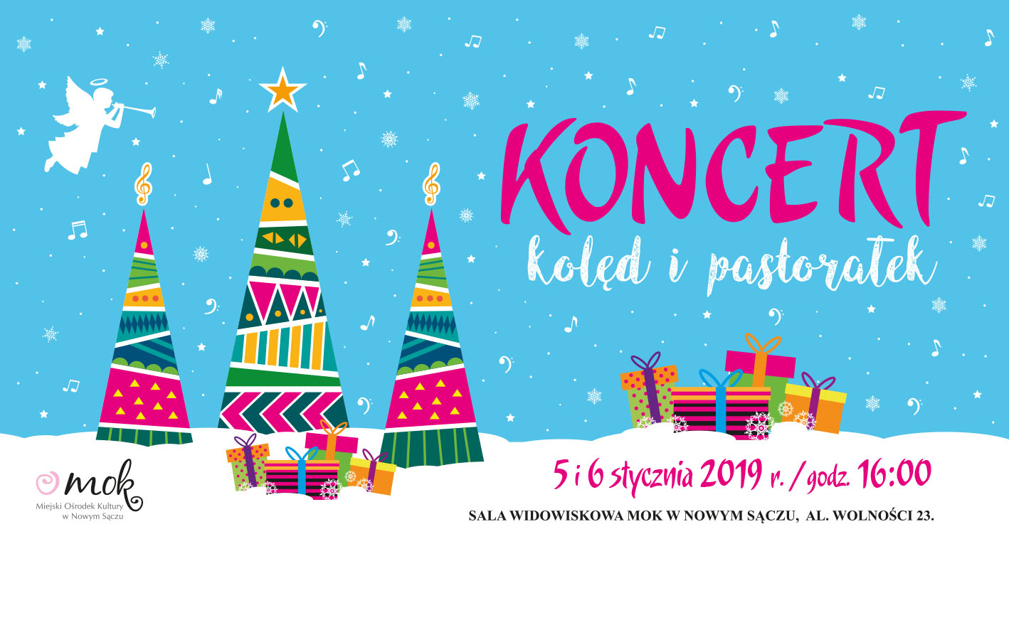 130. młodych artystów wystąpi na scenie Miejskiego Ośrodka Kultury w dwóch Koncertach Kolęd i Pastorałek, które odbędą się 5 i 6 stycznia 2019 roku o godzinie 16:00. Bezpłatne wejściówki na koncerty są do odebrania w sekretariacie MOK przy Alejach Wolności 23.