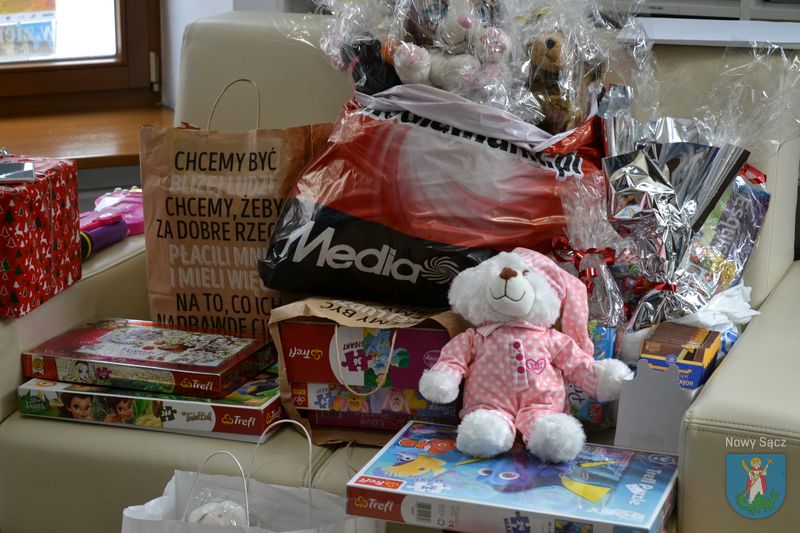 Podczas spotkania prezes fundacji Iwona Romaniak wręczyła dyrektorowi Tomaszowi Baliczkowi dyplom - podziękowania za włączenie się Urzędu Miasta Nowego Sącza w organizowane przez siebie akcje, a w zamian otrzymała pluszowego misia z prośbą o oddanie go dzieciom z lwowskiego sierocińca.
