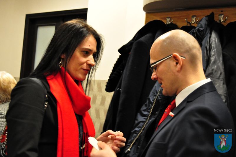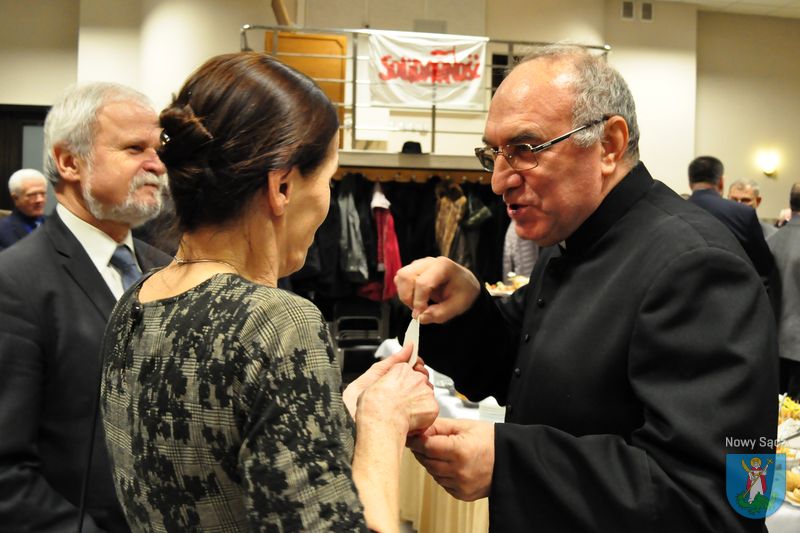 Po zakończonej mszy świętej, uczestnicy przeszli do auli do mu parafialnego, gdzie odbyło się noworoczne spotkanie, które poprowadził szef sądecko-gorlickiego oddziału NSZZ „Solidarność” Krzysztof Kotowicz. Życzenia uczestnikom opłatkowego spotkania złożył miedzy innymi przewodniczący małopolskiej „Solidarności” Wojciech Grzeszek, a także sądeccy parlamentarzyści, m.in. poseł Jan Duda i poseł Arkadiusz Mularczyk. W imieniu władz miasta najlepsze życzenia przekazał zastępca prezydenta Artur Bochenek.