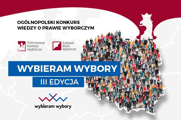 Państwowa Komisja Wyborcza wraz z Krajowym Biurem Wyborczym organizują III Edycję Ogólnopolskiego Konkursu Wiedzy o Prawie Wyborczym „Wybieram Wybory”. Konkurs jest przeznaczony dla uczniów szkół ponadgimnazjalnych i ponadpodstawowych. Chętni uczniowie mogą zgłaszać się do udziału w konkursie za pośrednictwem dyrektora swojej szkoły do 31 stycznia 2019 r.