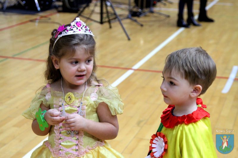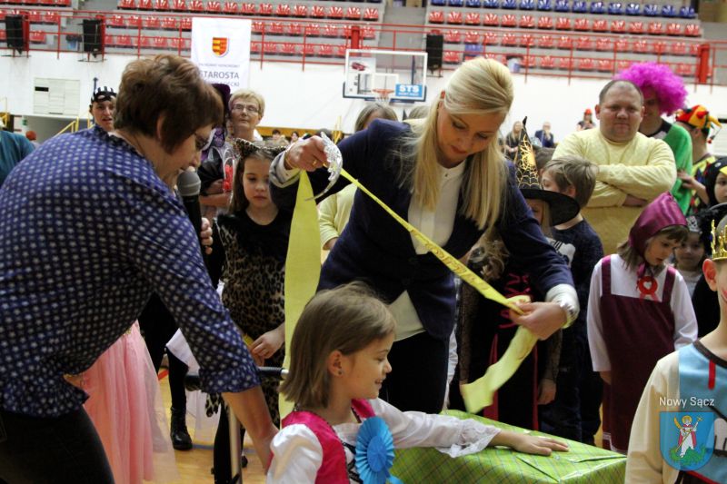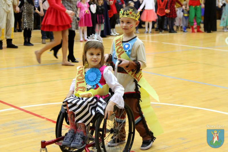 Wśród wielu przygotowanych atrakcji odbyły się wybory Króla i Królowej balu, którymi zostali: Tomasz Gwóźdź (8 lat) i Paulina Szkaradek (9 lat). Gratulacje wyróżnionej parze wraz z wyjątkowymi prezentami przekazała w imieniu Prezydenta Miasta Nowego Sącza Ludomira Handzla, dyrektor Wydziału Ochrony Zdrowia i Pomocy Społecznej, Małgorzata Kuśmierkiewicz. Podkreśliła, że to wielka radość patrzeć na uśmiechnięte dzieci, które mogą tak wspaniale spędzać czas podczas kolejnego już balu karnawałowego. Każde dziecko, które pojawiło się w hali sportowej MOSiR, mogło skorzystać w licznych atrakcji, które zostały przygotowane przez organizatorów, a także partnerów wydarzenia. Także w tym roku stanowisko strzelnicze przygotowali funkcjonariusze Karpackiego Ośrodka Wsparcia Straży Granicznej w Nowym Sączu, a sądeccy policjanci zadbali o promocję wiedzy o bezpieczeństwie ruchu drogowego poprzez konkurs wiedzy.