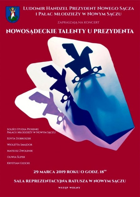 Decyzją Prezydenta Miasta Nowego Sącza Ludomira Handzla, Studio Piosenki Pałacu Młodzieży zainauguruje 29 marca cykl koncertów „Nowosądeckie Talenty u Prezydenta”.