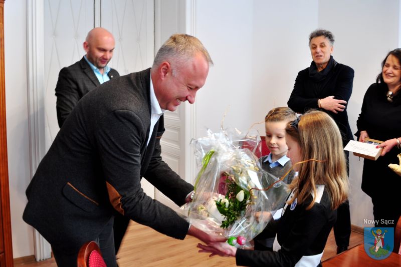 Życzenia spokoju, pogody ducha, miłości i rodzinnego ciepła - takie między innymi życzenia padły z ust sądeckich uczniów oraz ich opiekunów, którzy odwiedzili sądecki ratusz, by spotkać się z Prezydentem Miasta Nowego Sącza Ludomirem Handzlem oraz jego zastępcami: wiceprezydentem Arturem Bochenkiem i wiceprezydent Magdaleną Majką, z okazji nadchodzących Świąt Wielkiej Nocy.