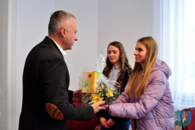 Życzenia przekazali uczniowie SP nr 11 im. Juliana Tuwima, SP nr 21 z Oddziałami Integracyjnymi im. Św. Jana Pawła II, Zespołu Szkół nr 3 im. Bolesława Barbackiego w Nowym Sączu, IV Liceum Ogólnokształcącego Sportowego im. Świętej Kingi, Specjalnego Ośrodka Szkolno - Wychowawczego a także podopieczni Pałacu Młodzieży w Nowym Sączu wraz z dyrekcją.