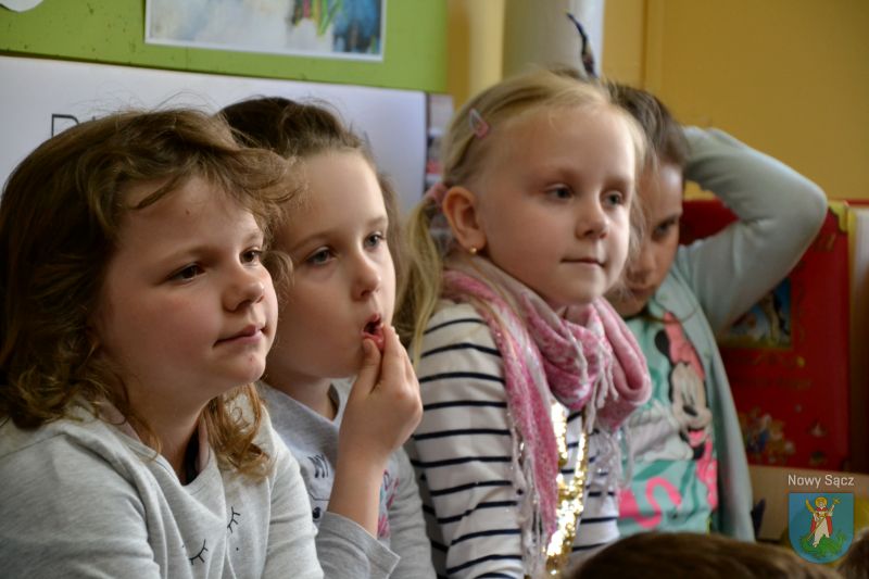 Po wysłuchaniu opowieści o słoniu Elmerze, dzieci zadawały pytania prezydentowi Nowego Sącza. Pytały między innymi o to, czy prezydent lubi czytać książki.