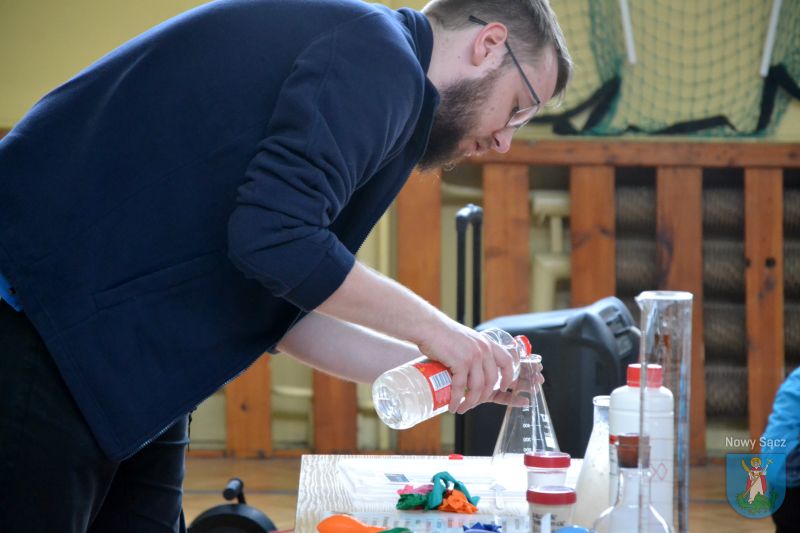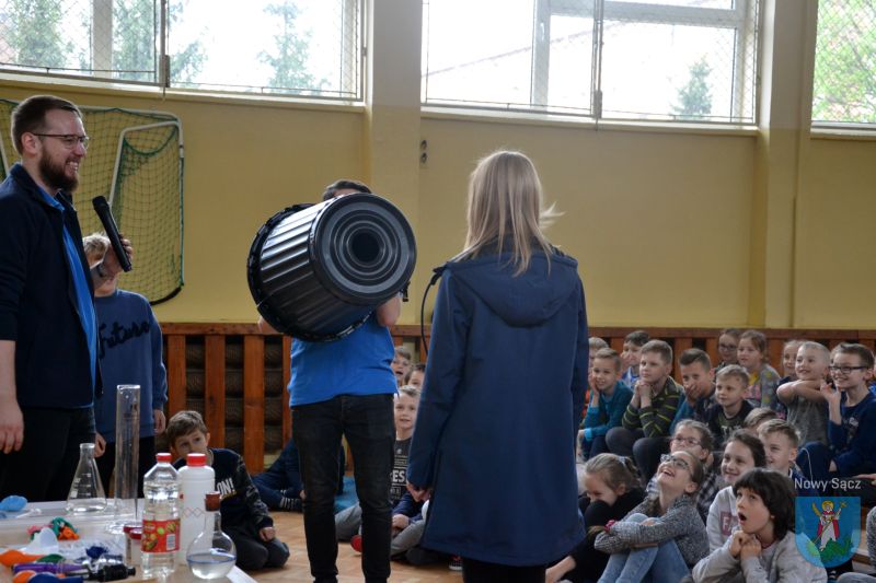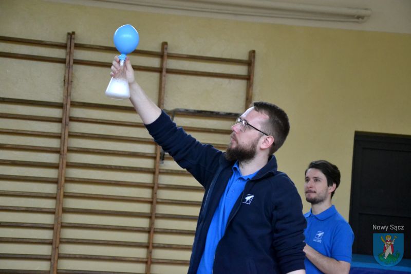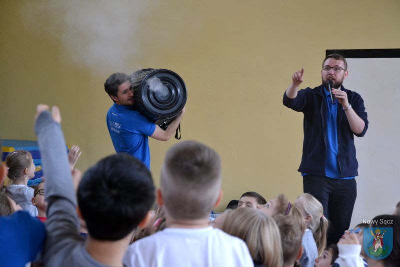 Animatorzy prowadzą też zajęcia w szkołach podstawowych, prezentując ciekawe i widowiskowe eksperymenty.