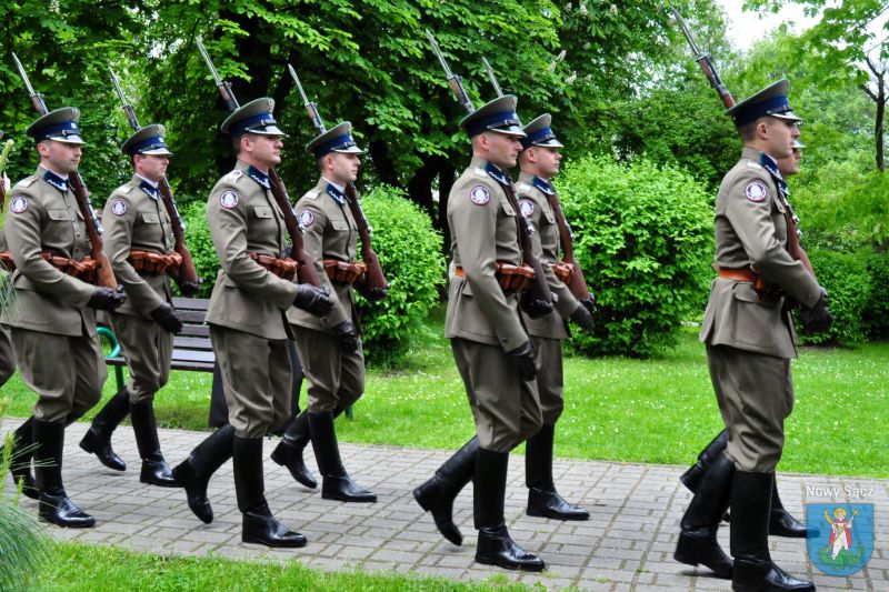 - Znajdujemy się w miejscu szczególnym, w miejscu, gdzie 31 października 2018 roku zostały wmurowane odtworzone tablice upamiętniające nazwiska 194. oficerów I Pułku Strzelców Podhalańskich, poległych w walce o wolną Polskę. Wybór tego miejsca na dzisiejszą uroczystość jest z naszej strony swoistym hołdem dla I Pułku, naszego patrona, gdyż to w tym miejscu, w okresie międzywojennym, odbywały się uroczystości Garnizonu Nowy Sącz z okazji Dnia Żołnierza - podkreślił Komendant Karpackiego Oddziału Straży Granicznej płk SG Stanisław Laciuga.