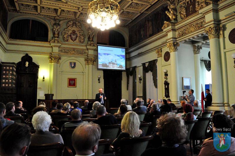 Prezydent Ludomir Handzel przedstawił zebranym, wśród których było dużo przedsiębiorców z sądeckiej starówki, stopień zaawansowania inwestycji miejskich, opowiedział też o najbliższych planach na rozwój miasta i poprawę życia jego mieszkańców.