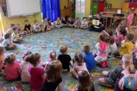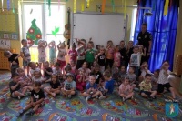 Funkcjonariusze Komendy Straży Miejskiej w Nowym Sączu przeprowadzili zajęcia dotyczące bezpieczeństwa. Wszystkie dzieci ćwiczyły przejście przez jezdnię i dyskutowały na temat poruszania się po drodze, kiedy nie ma chodnika. Przeszkolona funkcjonariuszka straży miejskiej przypominała o znakach drogowych, które mogą pomóc pieszym w bezpiecznym poruszaniu się.