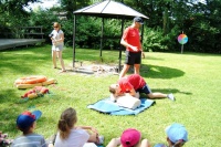 Spotkanie rozpoczęła dyrektor placówki Aleksandra Ślusarek, witając przybyłych gości, a wśród nich ratowników Sądeckiego Wodnego Ochotniczego Pogotowia Ratunkowego, którzy zaprezentowali najważniejsze zasady zachowania się nad wodą podczas letniego wypoczynku. Zademonstrowali sprzęt ratowniczy oraz przeszkolili dzieci z zasad pierwszej pomocy. Szkolenie przeprowadzone przez profesjonalnych ratowników cieszyło się ogromnym zainteresowaniem, dzieci aktywnie i z dużym zaangażowaniem podjęły próby reanimacji.