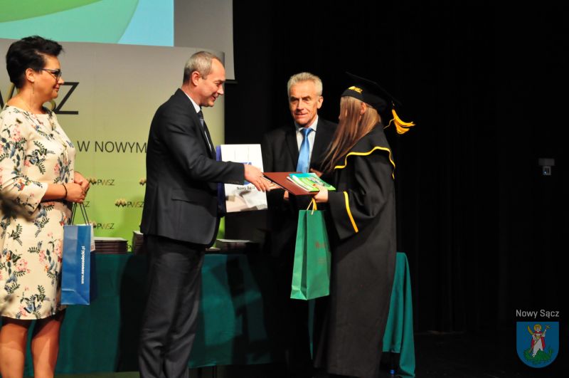 W auli Biblioteki Państwowej Wyższej Szkoły Zawodowej w Nowym Sączu odbyła się uroczysta gala wręczenia dyplomów absolwentom studiów Instytutu Ekonomicznego. W wydarzeniu wziął udział prezydent Ludomir Handzel, a także dyrektor Wydziału Komunikacji Społecznej i Kultury dr Marcin Poręba i dyrektor Wydziału Bezpieczeństwa i Kontroli Wewnętrznej Mirosław Świst.
