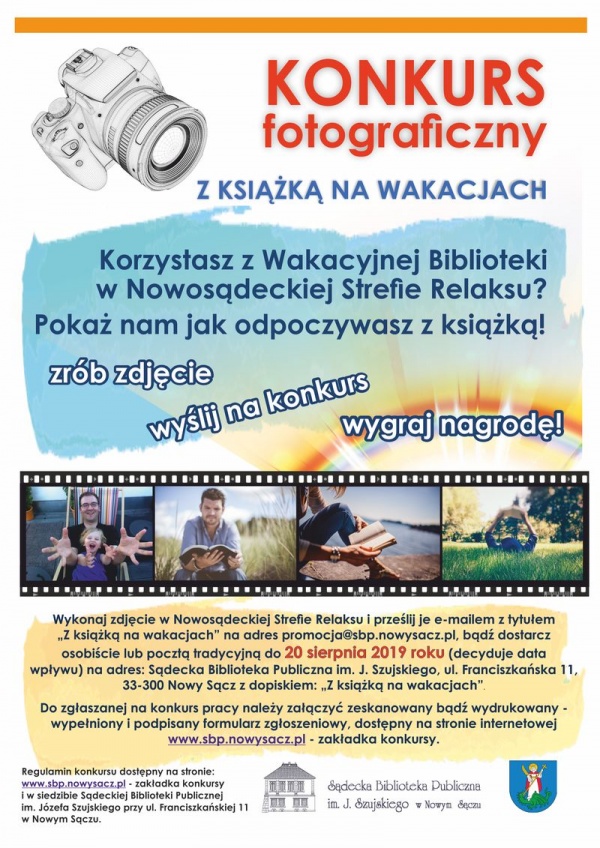 Do udziału zaproszeni są wszyscy chętni. Wystarczy zrobić zdjęcie w Strefie Relaksu nawiązujące do książek, czytania, odpoczynku i do 20 sierpnia br. wraz z formularzem zgłoszeniowym wysłać na adres mailowy biblioteki: promocja@sbp.nowysacz.pl. Można też dostarczyć osobiście lub pocztą tradycyjną na adres: Sądecka Biblioteka Publiczna im. J. Szujskiego, ul. Franciszkańska 11, 33-300 Nowy Sącz z dopiskiem: "Z książką na wakacjach". Na autorów najciekawszych zdjęć czekają oczywiście nagrody.