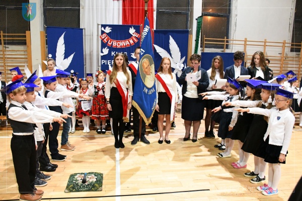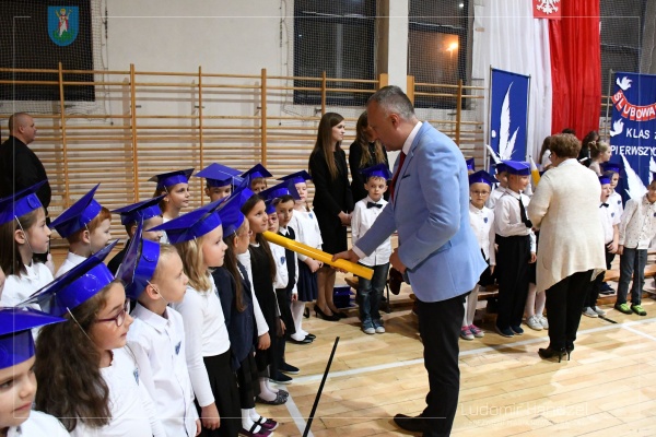 Przedstawiciele klas pierwszych złożyli ślubowanie przed sztandarem szkoły. Prezydent Ludomir Handzel, dyrektor szkoły Beata Mac, radni Leszek Gieniec i Dawid Dumana oraz przedstawiciele oświaty pasowali pierwszaków na uczniów za pomocą okazałych ołówków. Świeżo upieczeni uczniowie otrzymali również od prezydenta książki. Uroczystość zakończyła się występem artystycznym pierwszoklasistów.