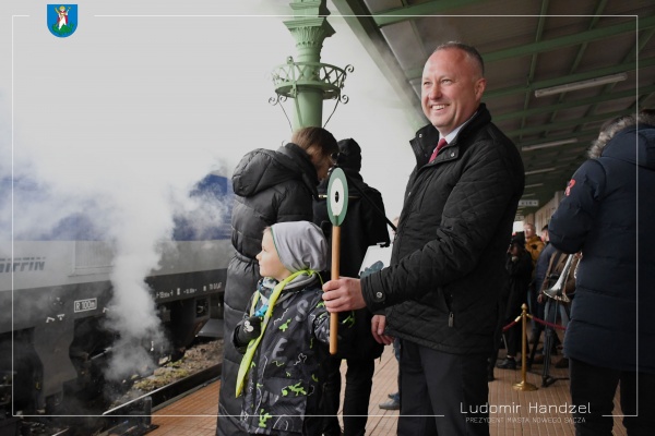 „Zielone światło” do odjazdu lokomotyw spod dworca PKP w Nowym Sączu, dał prezydent Ludomir Handzel wraz z Szymonem, uczniem jednej z sądeckich Szkół.