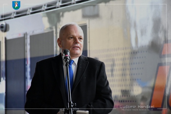 Prezydent Ludomir Handzel wziął udział w oficjalnej prezentacji lokomotyw elektrycznych Griffin wyprodukowanych przez Newag S.A. dla zamawiającego - PKP Intercity S.A. W uroczystości wzięli także udział prezes Newag S.A. Zbigniew Konieczek oraz marszałek Województwa Małopolskiego Witold Kozłowski.