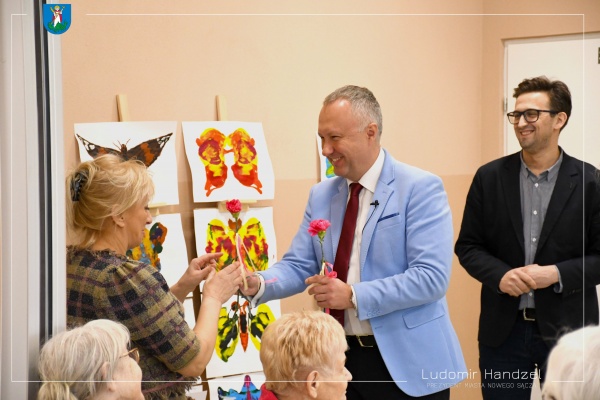 Były kwiaty, słodkości i życzenia - Prezydent Ludomir Handzel spotkał się z seniorami z Dziennego Domu Seniora. W trakcie wizyty seniorki zostały obdarowane przez prezydenta kwiatami i najlepszymi życzeniami.