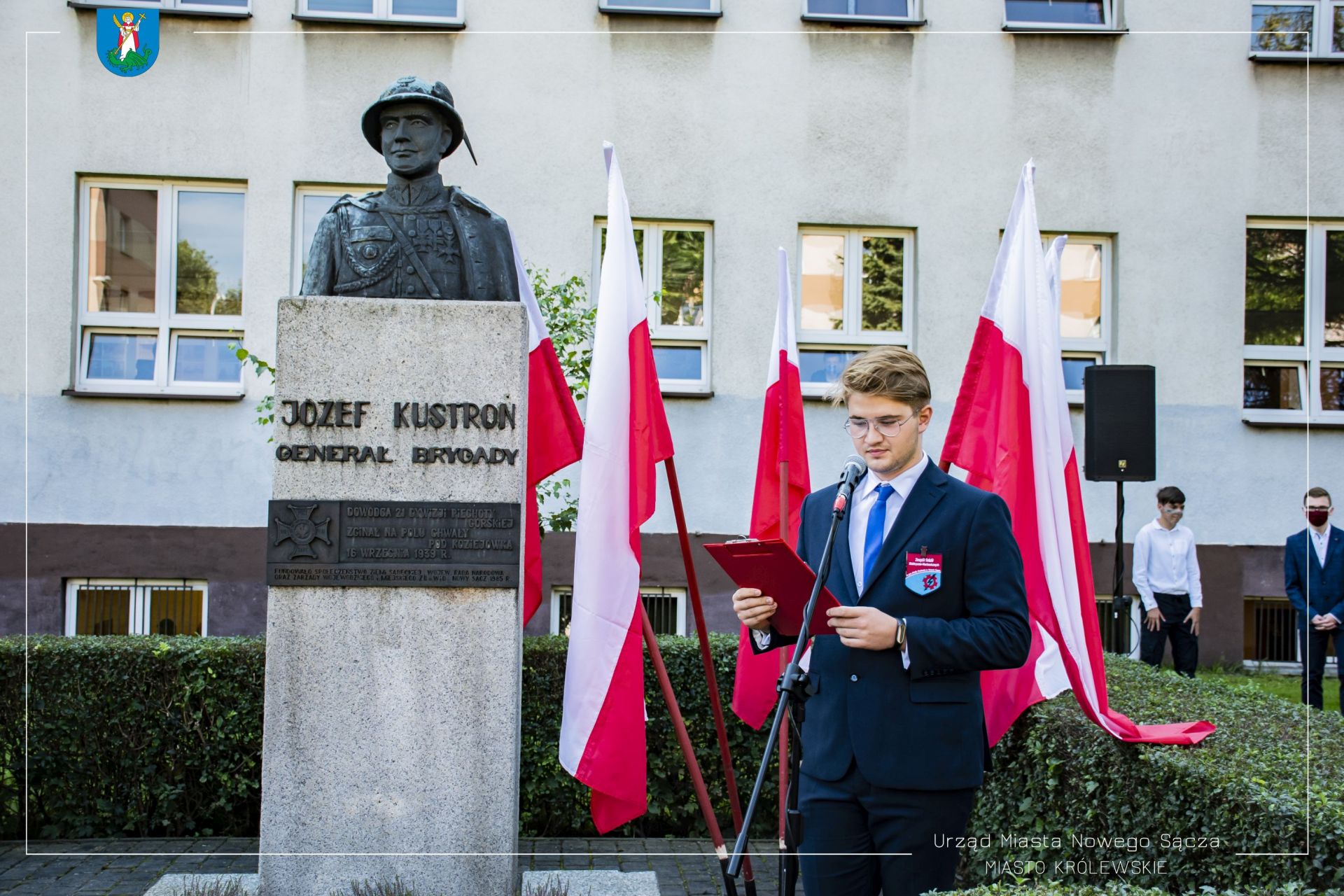 Generał brygady Józef Kustroń urodził się w Stryju w 1892 r., ale związany jest też z naszym miastem. To tutaj przeniosła się jego rodzina. W Nowym Sączu spędził swoją młodość. Jego życie to przykład losu patrioty, który najpierw musiał walczyć o niepodległość, a potem jej bronić. Członek Związku Strzeleckiego, żołnierz Legionów, uczestnik I Wojny Światowej i kampanii przeciwko bolszewikom, a w końcu dowódca 21. Dywizji Piechoty Górskiej w Bielsku-Białej próbując wyprowadzić swoją jednostkę z okrążenia, poległ 16 września 1939 roku pod Ułazowem na Lubelszczyźnie. W chwili śmierci miał na piersi Srebrny Krzyż Virtuti Militari, otrzymany za wojnę 1919 – 1920 roku.