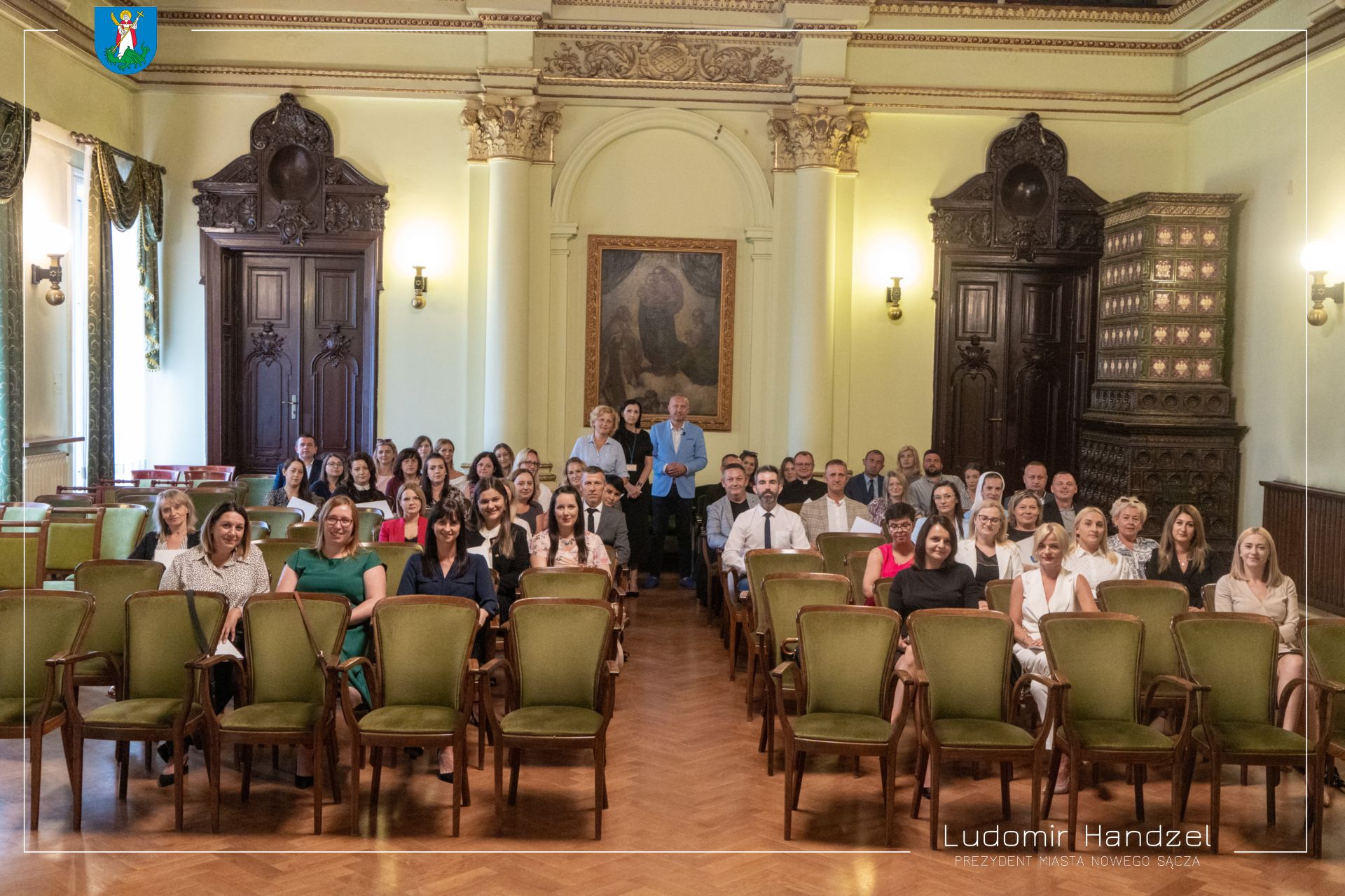 Prezydent Ludomir Handzel oraz wiceprezydent Magdalena Majka spotkali się 28 sierpnia z nowosądeckimi nauczycielami. Okazją było uroczyste wręczenie 51 pedagogom ze szkół, przedszkoli, oraz innych placówek oświatowych aktów mianowania. Zyskali oni w ten sposób tytuł nauczyciela mianowanego.